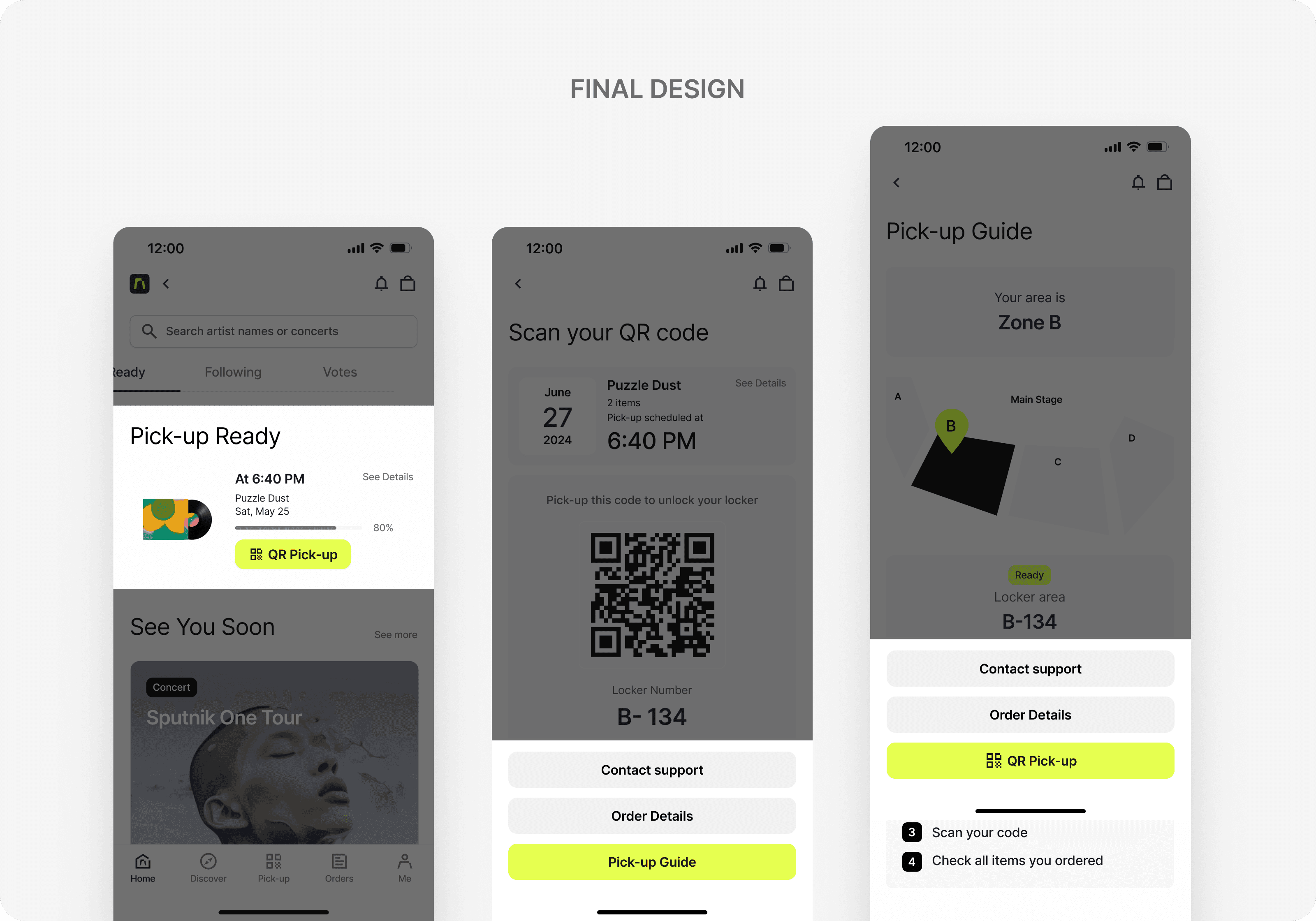 With a single tap, users can activate a scannable QR code to quickly check and collect their orders at concerts, without long lines.